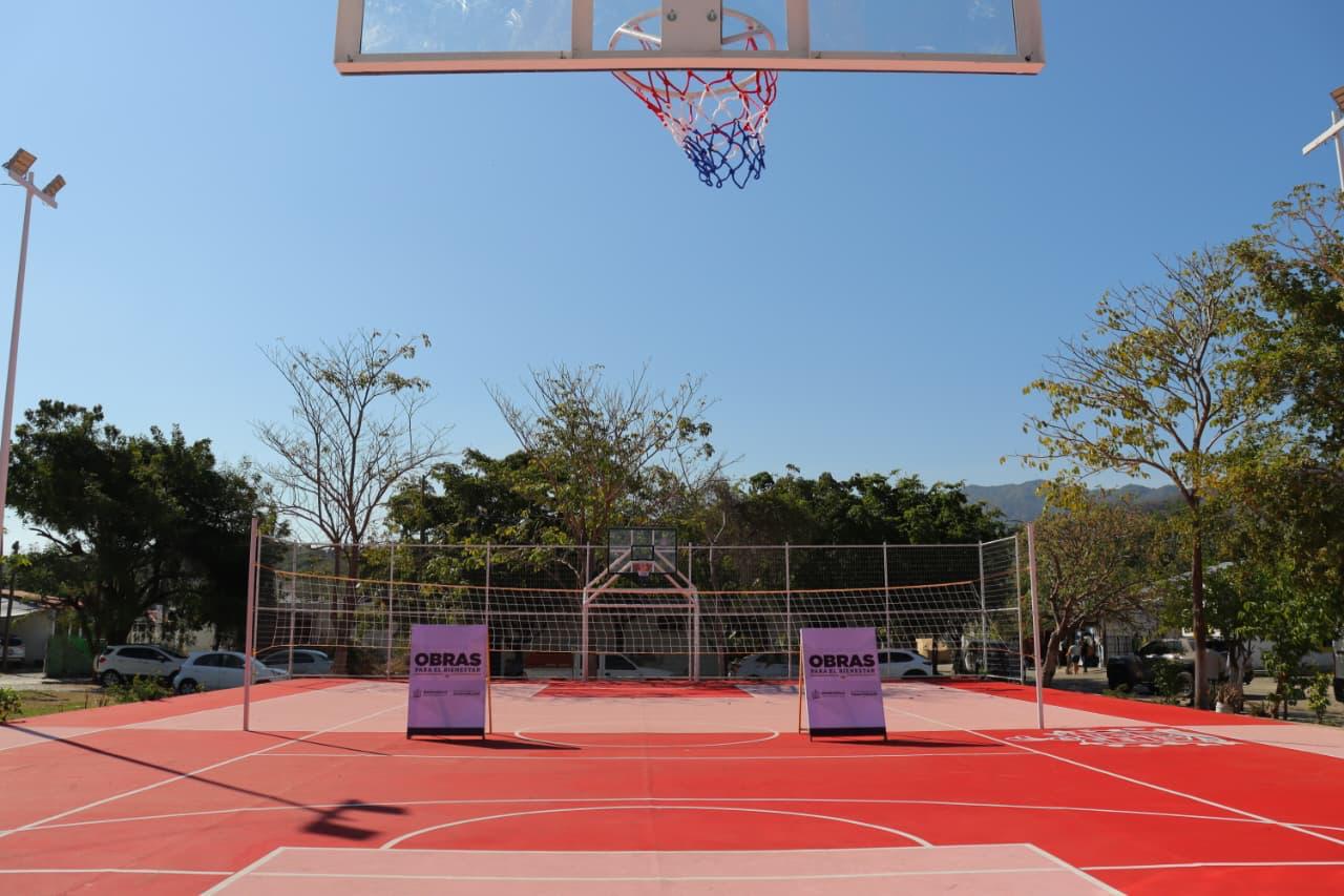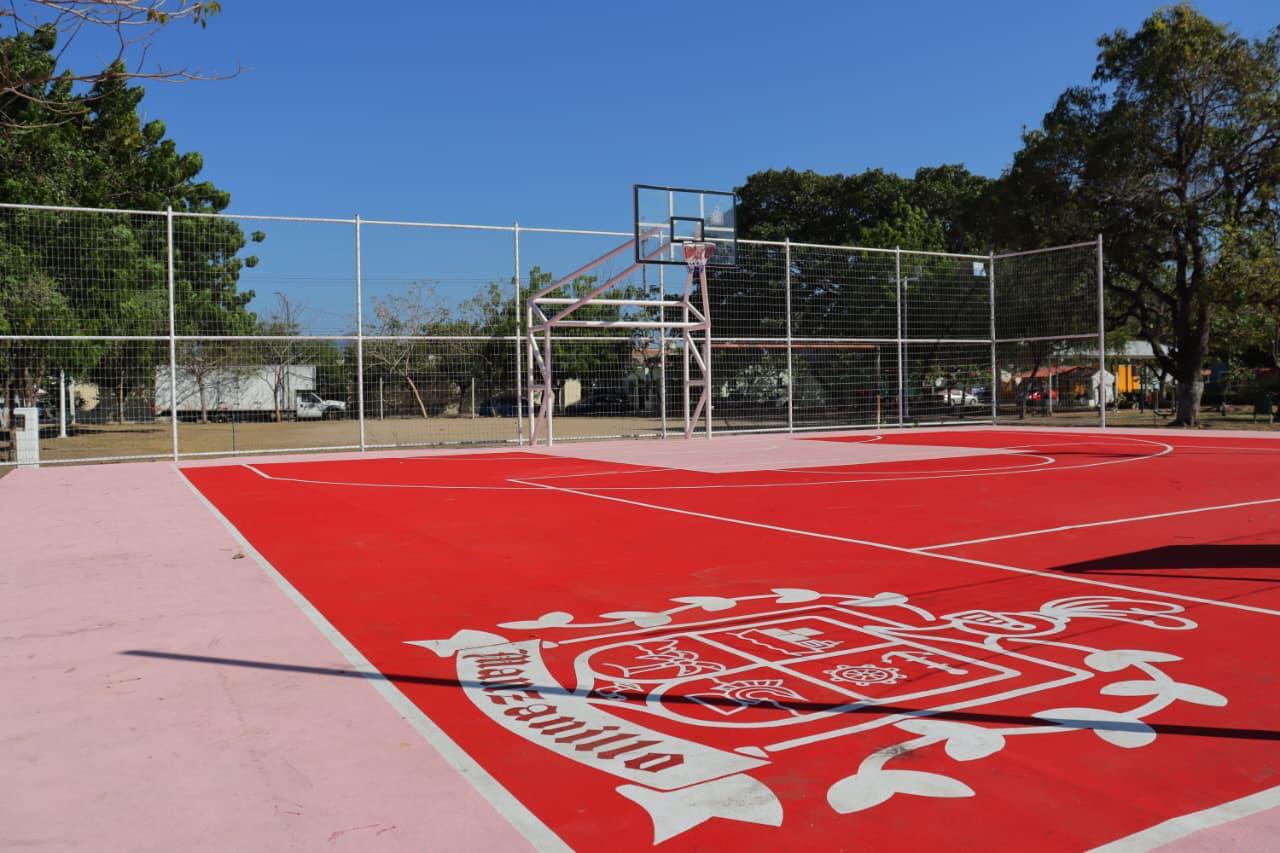 Manzanillo.- Como parte de las #ObrasParaElBienestar que se realizan en todo el municipio, la presidenta municipal Rosi Bayardo concluyó la rehabilitación del espacio deportivo de la colonia Valle del Coral, donde se intervino la cancha deportiva y el área de jardín.