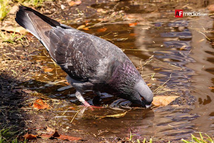 Esto aplica para todos los seres vivos, en esta imagen podemos apreciar a una paloma haciendo lo propio en un charco.