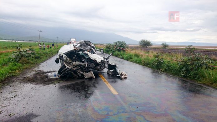 Jalisco.- Torton impacta de frente un vehículo compacto Spark en la carretera libre Guadalajara – Sayula (carretera estatal 401), en el kilómetro km 59+900, dejando un saldo de un muerto.