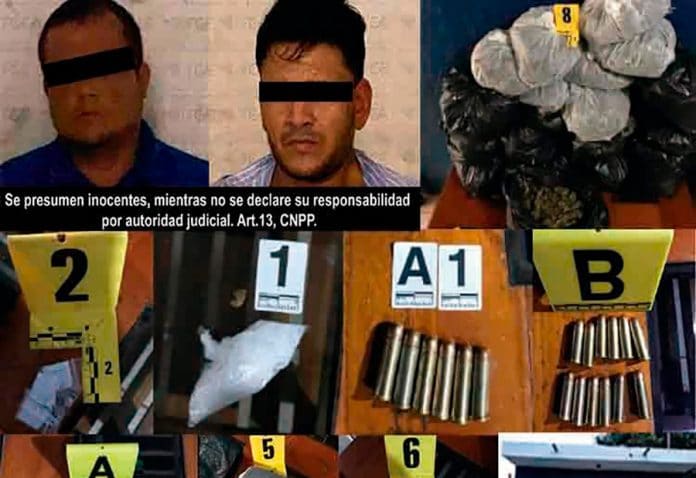 En el lugar fue detenido un masculino de 34 y otro de 28 años de edad, por su comisión en el delito contra la salud en agravio de la sociedad, para posteriormente, ser puestos a disposición de la autoridad competente para el inicio de las investigaciones.