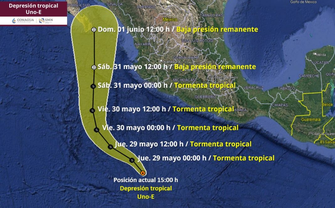 COLIMA.- El Servicio Meteorológico Nacional (SMN), fuente oficial del Gobierno de México, informó la formación de la Depresión Tropical Uno-E, el primer ciclón tropical de la temporada 2025 en el Océano Pacífico. El fenómeno se localiza actualmente frente a las costas de Guerrero y Michoacán, con potencial para seguir generando lluvias intensas en el occidente, centro y sur del país.