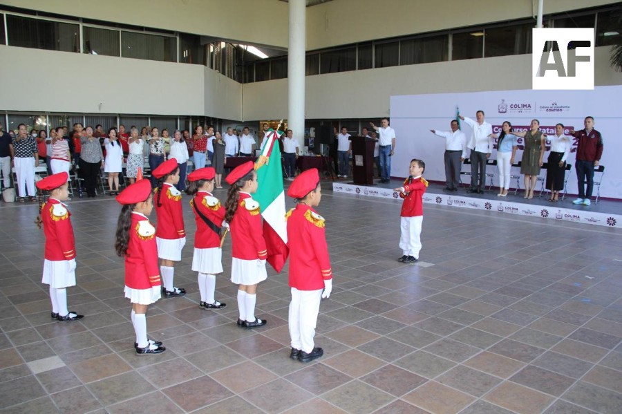 La Secretaría de Educación y Cultura del Gobierno del Estado de Colima realizó este lunes la primera Exhibición Estatal de Escoltas de Bandera de nivel preescolar, para fortalecer la formación cívica desde la primera infancia y reafirmar el compromiso institucional de fomentar y aumentar entre el alumnado el respeto y el amor a nuestra enseña nacional.