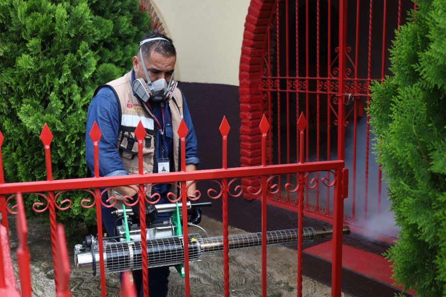 Asimismo, se desplazan en unidades móviles para la fumigación permanente en temporada de lluvias, que es cuando aumenta la presencia del mosco transmisor, nebulizando miles de hectáreas en los cinco municipios de riesgo, así como en otros municipios donde se detecta mayor densidad del mosco y se presentan casos probables de dengue.
