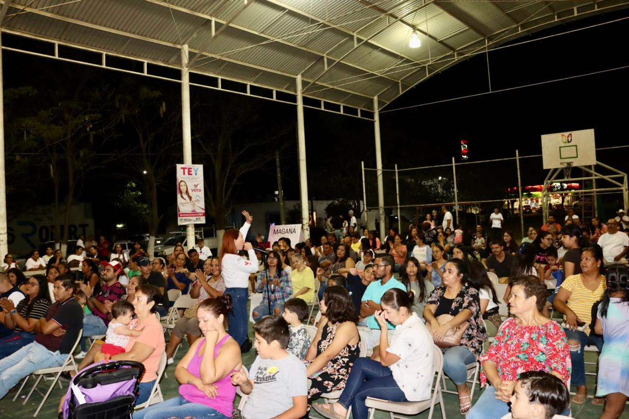 En la cancha de usos múltiples de la colonia, la abanderada de los partidos Revolucionario Institucional y Acción Nacional a la alcaldía villalvarense recordó que la actual administración municipal inició la modernización de la red de semáforos viales, cambiando las luces que controlan el tránsito en 20 cruceros.