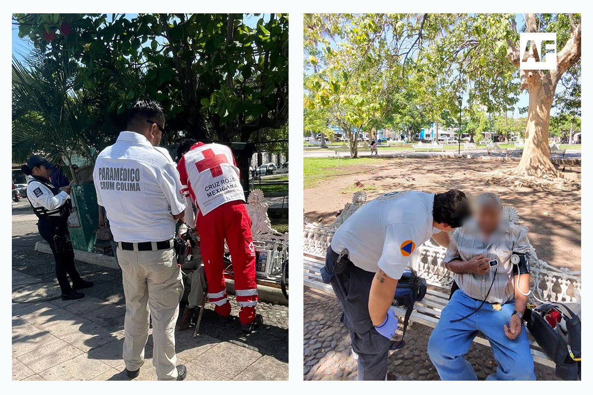 COLIMA.- La tarde de este miércoles 18 de febrero, las corporaciones de emergencia de la capital colimense se movilizaron hacia el jardín Núñez para brindar atención médica inmediata a dos adultos mayores que presentaron complicaciones de salud de manera consecutiva.