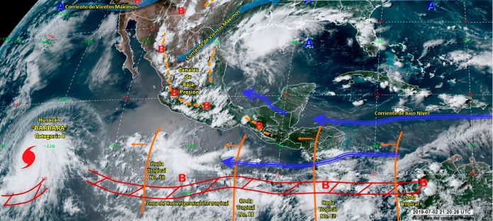 En vigilancia, el huracán “Bárbara” de categoría 4 en el Océano Pacífico, se localiza a mil 790 km al suroeste de Cabo San Lucas, B.C.S. Lejos y sin afectar a México.