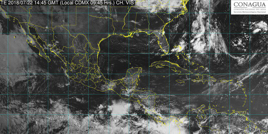 Hoy se pronostican tormentas fuertes en Sinaloa, Nayarit, Jalisco, Michoacán, Guerrero, Oaxaca, Veracruz y Chiapas; lluvias con intervalos de chubascos en zonas de Chihuahua, Durango, Colima, Estado de México, Ciudad de México, Puebla, Tabasco, Campeche, Yucatán y Quintana Roo, y lluvias aisladas en Sonora, Morelos y Tlaxcala, informó el Servicio Meteorológico Nacional (SMN).