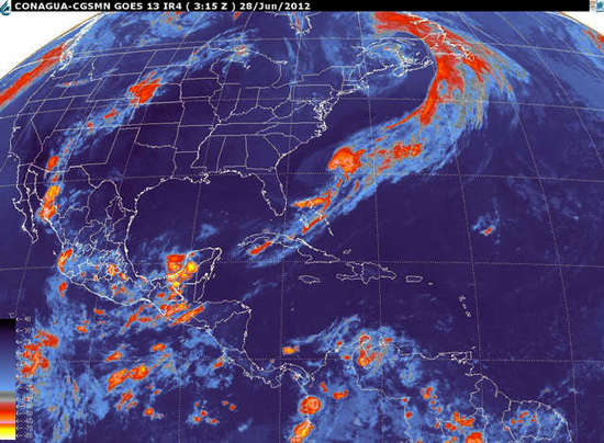 El Servicio Meteorológico Nacional (SMN) pronostica para este jueves 28 de junio, canales de baja presión, uno que se localizará en el Sur del Golfo de México y el segundo se extenderá desde Nuevo León hasta la Mesa Central, el cual mantendrán amplia zona de inestabilidad que generará nublados con lluvias fuertes a intensas con actividad eléctrica en el Centro, Sur y Sureste del país.