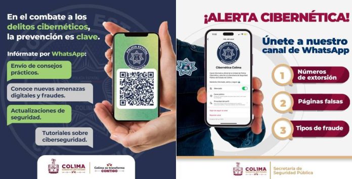 La Secretaría de Seguridad Pública (SSP) del Gobierno del Estado de Colima invita a la población de la entidad a suscribirse -de manera gratuita- al canal de difusión de la Policía Cibernética Colima, a través de https://whatsapp.com/channel/0029VaAyyCiATRSi23tsju3T en WhatsApp.