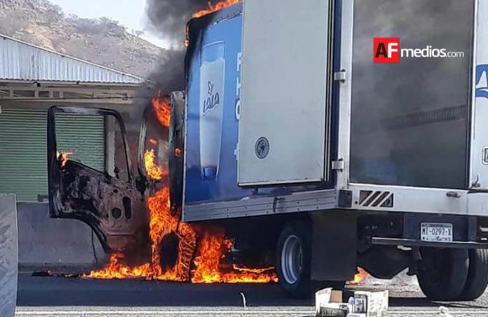 Por la noche, un camión de la compañía de la compañía Santorini fue incendiado en la colonia Palmira de Apatzingán.