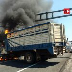 Los sujetos atravesaron ambos vehículos en medio de la carretera, les prendieron fuego y después huyeron.