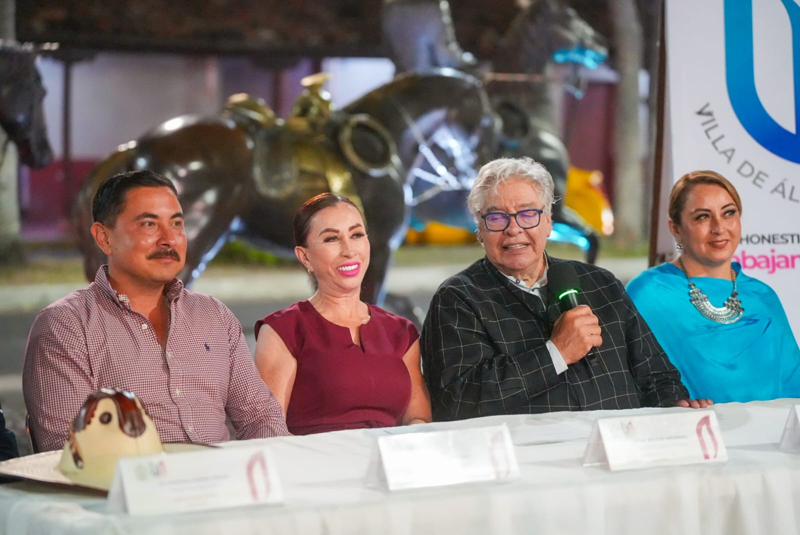 ‎Escultor Sebastián, participaron Gabriela Hernández, esposa del artista e integrante de la Fundación Sebastián; Edgar René Cruz Benavides, de la CMIC; Liz Rodríguez, Secretaria del Ayuntamiento, y Petronilo Vázquez Vuelvas, Director del Instituto de Festejos Charrotaurinos y Exposiciones de Villa de Álvarez.