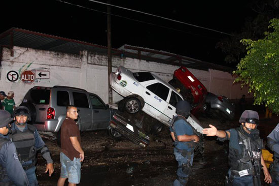 La dirección estatal de Protección Civil informó, a través de redes sociales, que realizó labores de rescate para personas atrapadas en sus vehículos en las calles inundadas del municipio, así como en viviendas afectadas por el agua y el lodo.