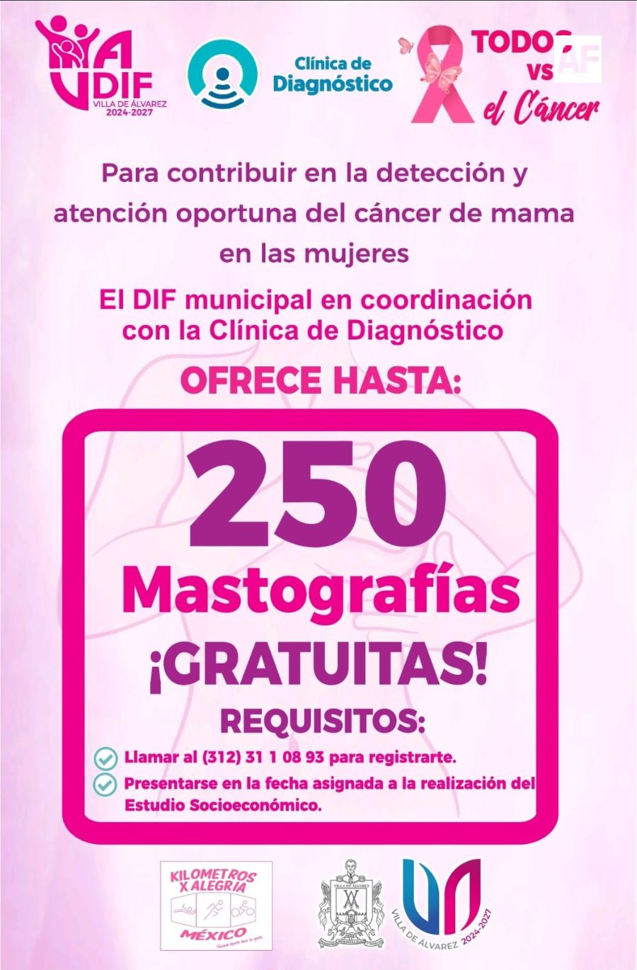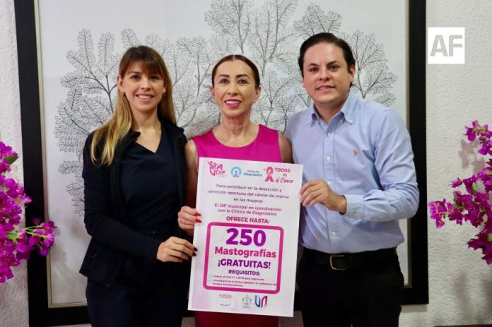 VILLA DE ÁLVAREZ.- Para contribuir en la detección oportuna del cáncer de mama, la Presidenta Tey Gutiérrez Andrade anunció la realización de 250 mastografías gratuitas para igual número de mujeres de Villa de Álvarez.
