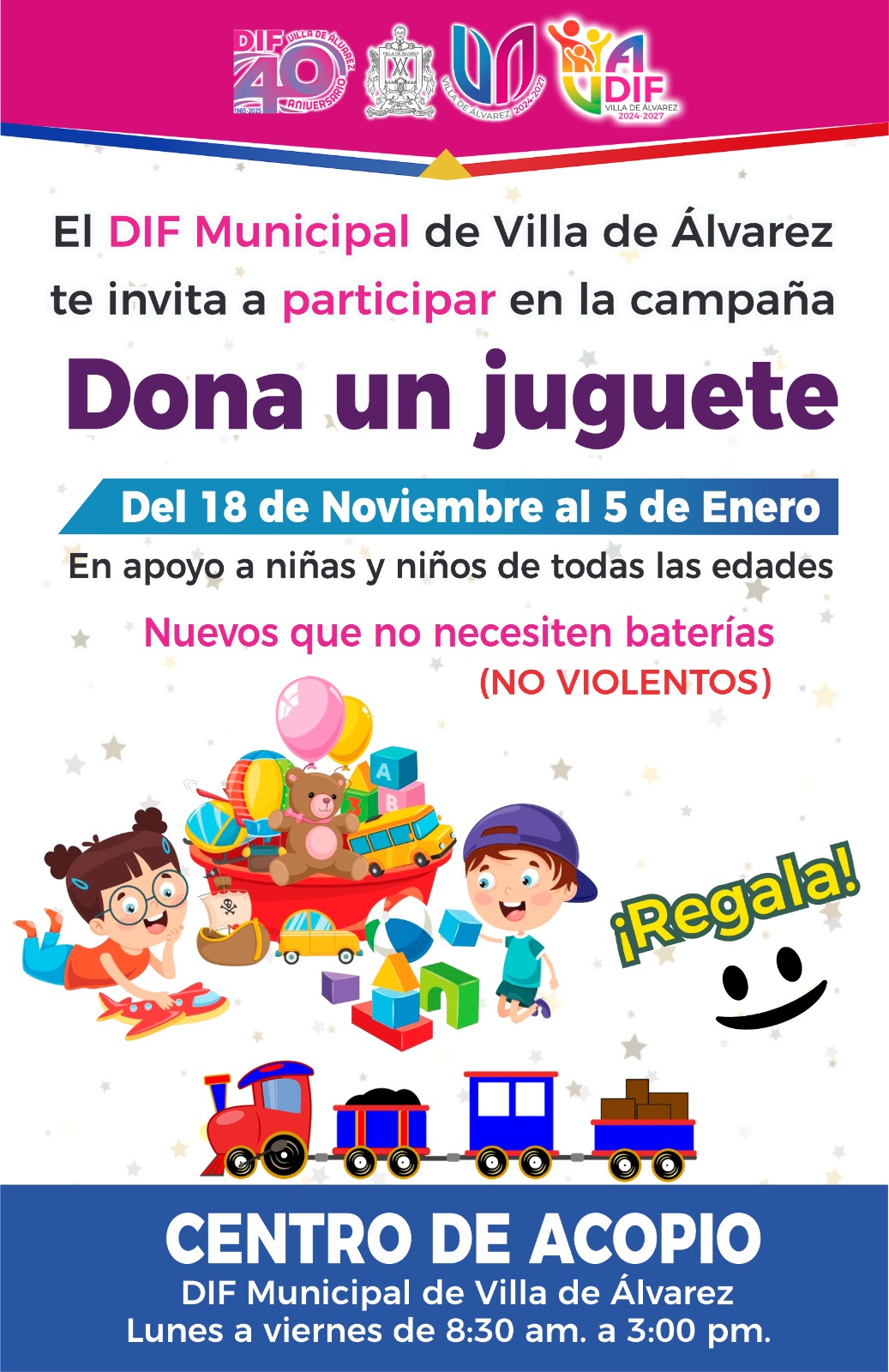 VILLA DE ÁLVAREZ.- La Presidenta Tey Gutiérrez Andrade presentó las campañas de donación para la temporada navideña: Dona un Juguete, No los Tires Dónalos y Abrigando Corazones, cuyo inicio es a partir de este martes 18 de noviembre para concluir el 5 de enero de 2026.
