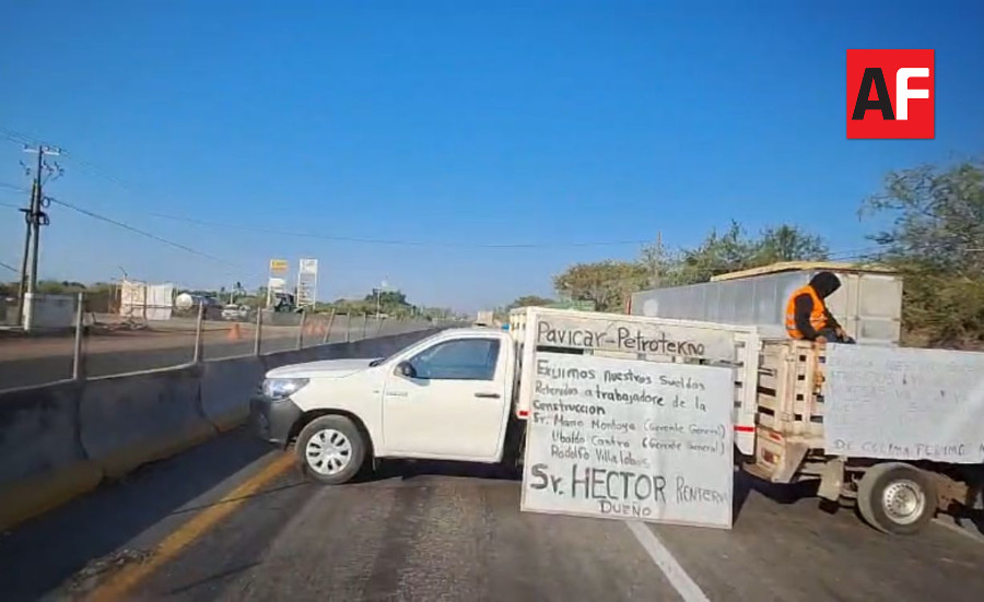 Tecomán.- La mañana de este martes 17 de febrero trabajadora de la obra de ampliación de la autopista realizaron un bloqueo carretero a la altura de Tecomán denunciando la falta de pagos.