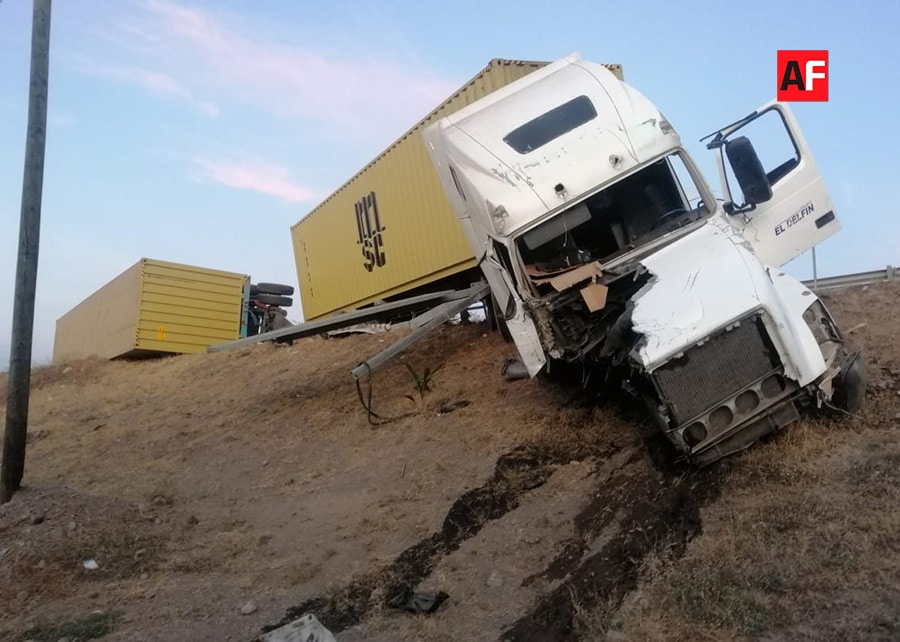 Ahí un trailer doble remolque se salió de la autopista, obstaculizando la entrada a la comunidad ya antes mencionada.