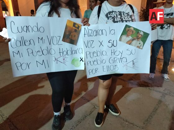 Cientos de pobladores, la mayoría vestidos con playeras blancas, salieron a las calles con pancartas donde se leía: “Fuera Fanny”, “La justicia es el único camino hacia la paz”, y “Para sacar a los delincuentes de las calles, primero hay que sacarlos del gobierno”.