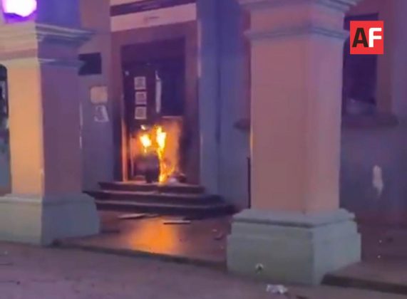 El Palacio Municipal fue vandalizado por un grupo de encapuchados que irrumpió en el inmueble y prendió fuego a diversas áreas.