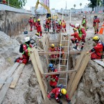 También se simuló un derrumbe en una zanja en la construcción de la línea 3 del tren eléctrico urbano, el cual dejó la simulación de 3 personas lesionadas y dos fallecidas.