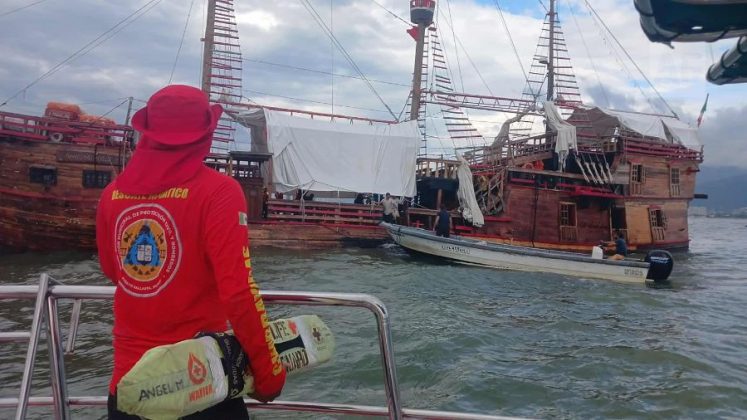 JALISCO.- Esta tarde, personal de la Unidad Estatal de Protección Civil y Bomberos de Jalisco (UEPCB Jalisco) acudió, en coordinación con Bomberos de Puerto Vallarta y personal de la Marina, para brindar asistencia a la embarcación “Marigalante”, que reportó fallas en una de sus bombas de achique mientras navegaba a la altura de Mismaloya.