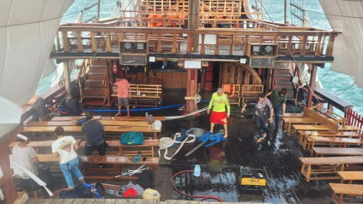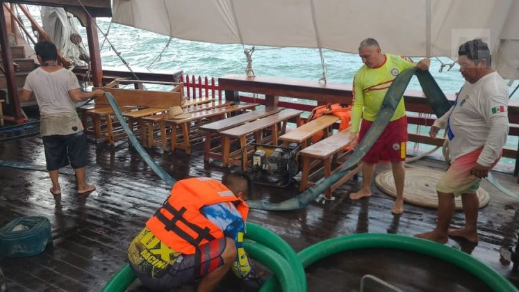 «Al intentar regresar al embarcadero, la embarcación presentó una segunda falla, por lo que nuestro personal, en conjunto con las diferentes dependencias, realizó maniobras con bombas de achique para extraer el agua», señaló la UEPCB Jalisco.