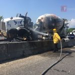 Un camión con trompo revolvedor de concreto se impactó contra el muro de contención, provocando que se incendiara la cabina. El incendio fue sofocado por elementos de Protección Civil.