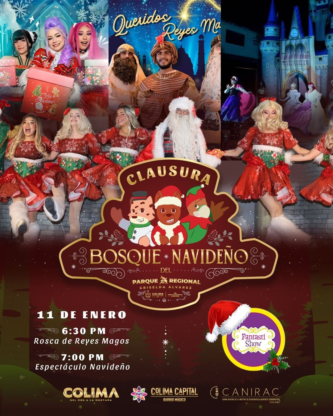 El programa especial de clausura iniciará a las 17:30 horas con el Coloquio de los Chayacates del Municipio de Ixtlahuacán; a las 18:30 se partirá la tradicional rosca de reyes, y a las 19:00 horas, Fantasti Show presentará su espectáculo que incluye a Las Guerreras K-Pop, la Rana Rhenné, los Reyes Magos y personajes navideños, dirigido al público infantil y familiar. Además, se contará con lluvia de burbujas a las 18:00 horas, así como nevadas navideñas en Candyland a las 19:00 y 20:00 horas, actividades que han sido de las más esperadas por las y los asistentes.