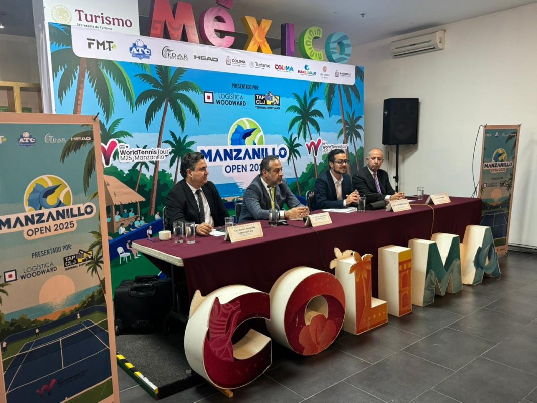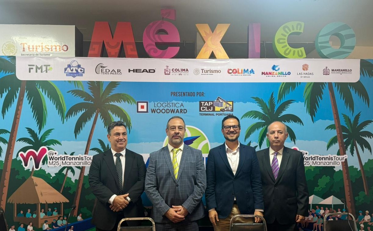 CDMX.- En instalaciones de la Secretaría de Turismo (Sectur) del Gobierno de México en la capital del país, se hizo la presentación oficial del Manzanillo Open 2025 de tenis, que se efectuará del 10 al 16 de noviembre en el hotel Las Hadas by Brisas; la presentación estuvo a cargo de Jorge Padilla Castillo, subsecretario de Turismo del Gobierno del Estado de Colima; Giovan Jiménez Ramírez, director de Facilitación y Calidad Regulatoria, representando a la titular de Sectur, Josefina Rodríguez Zamora; Carlos González López de Lara, presidente de la Federación Mexicana de Tenis; y Javier Gaytán Estrada, director del torneo y presidente de la Asociación Mexicana de Tenistas Profesionales.