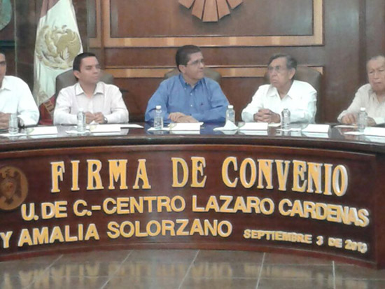 Eduardo Hernández Nava, rector de la Universidad de Colima, y Cuauhtémoc Cárdenas Solórzano, presidente del “Centro Lázaro Cárdenas y Amalia Solórzano” firmaron un convenio de colaboración en la Sala de Rectores de la casa de estudios, con lo que ambas instituciones formalizan el intercambio de experiencias y apoyos para realizar conferencias, proyectos, difusión de información de hechos históricos, talleres y digitalización de documentos que tiene el Centro Lázaro Cárdenas en su poder.