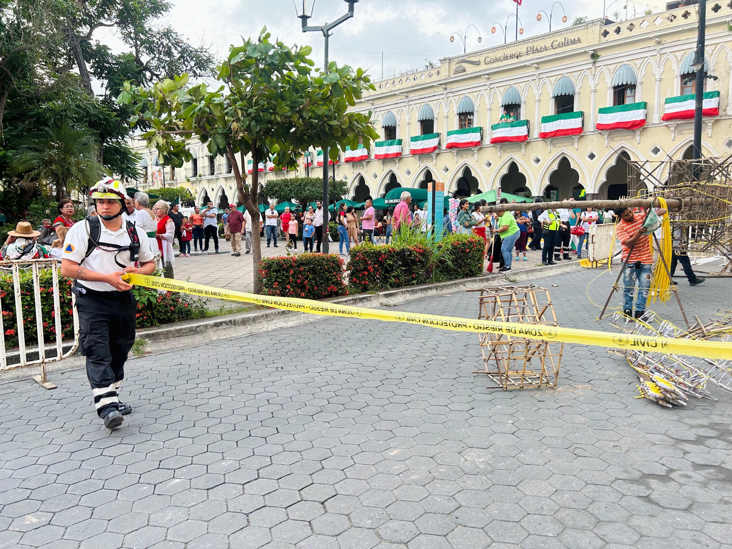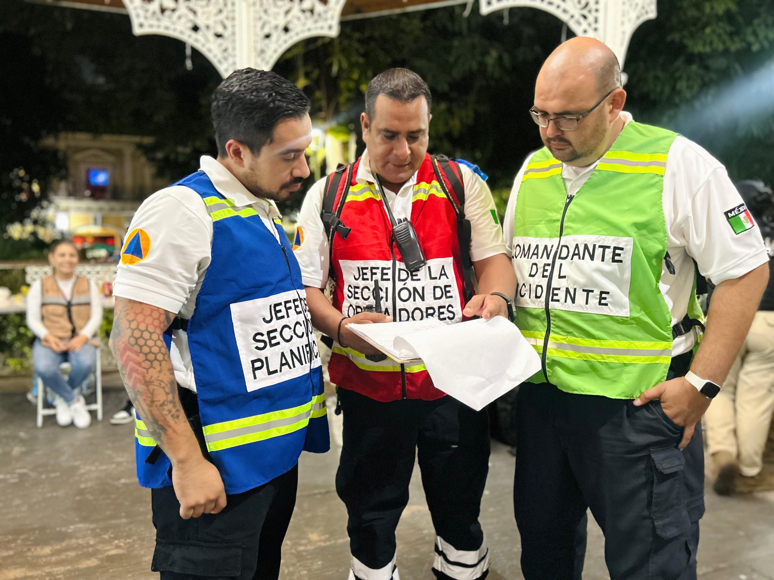 Las y los elementos estuvieron distribuidos de manera estratégica en distintos puntos del jardín Libertad, jardín Gregorio Torres Quintero y calle Francisco I. Madero, con ocho vehículos de atención de emergencias.