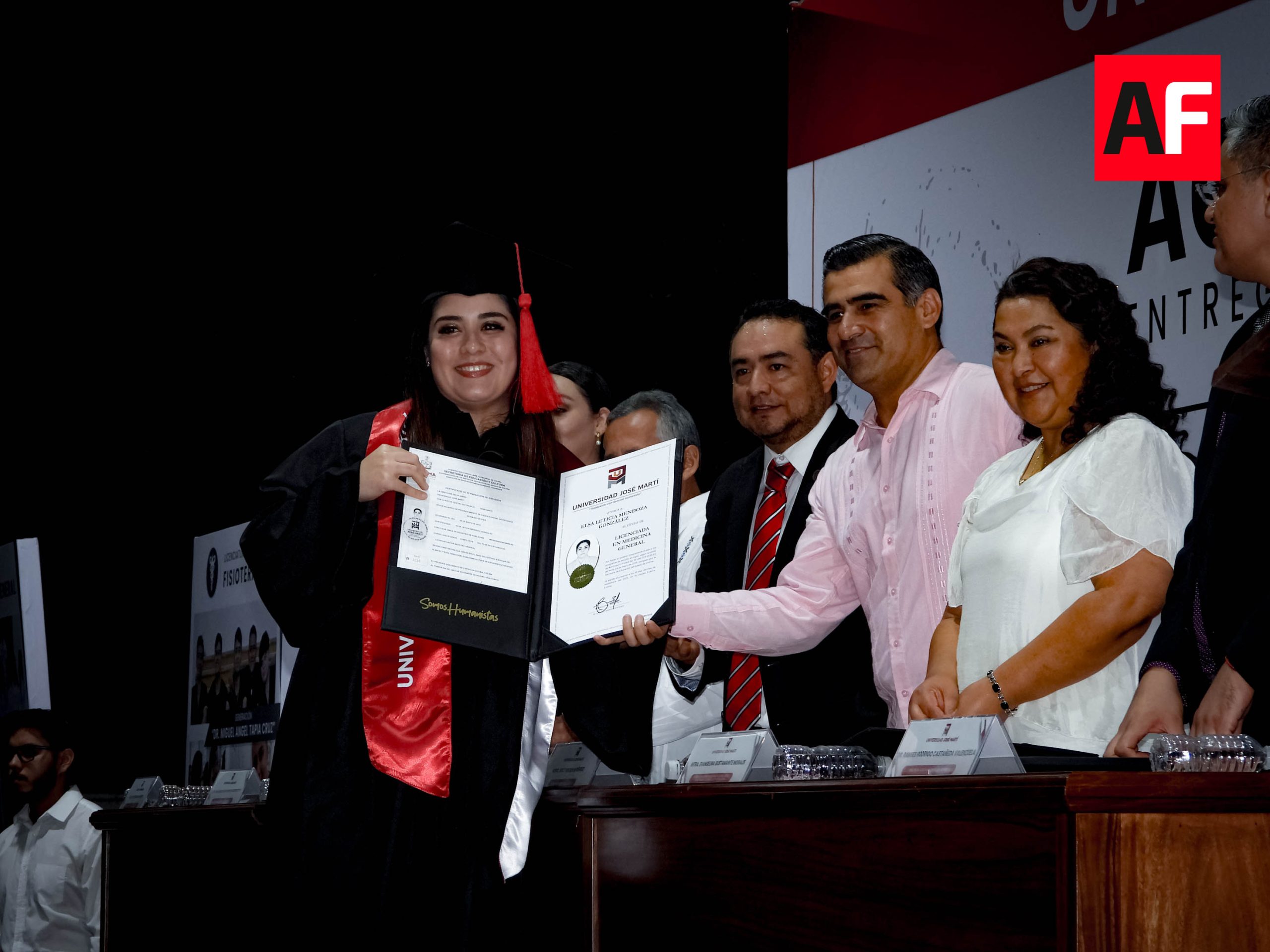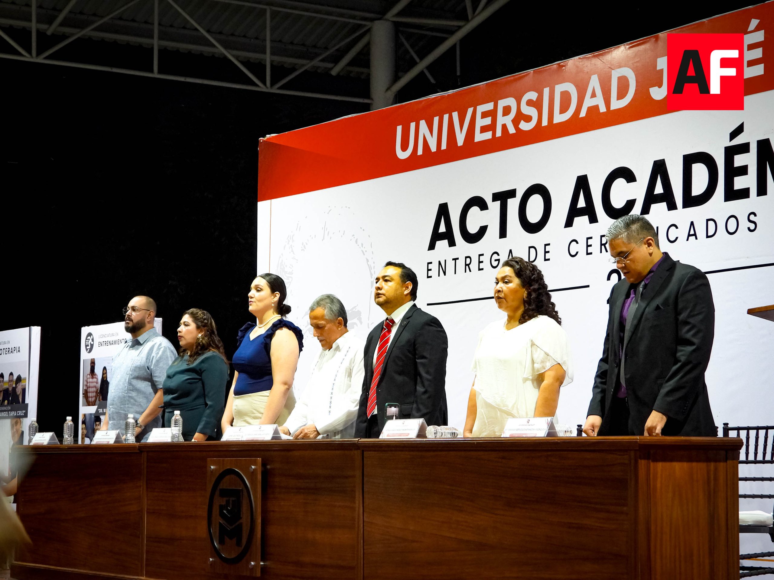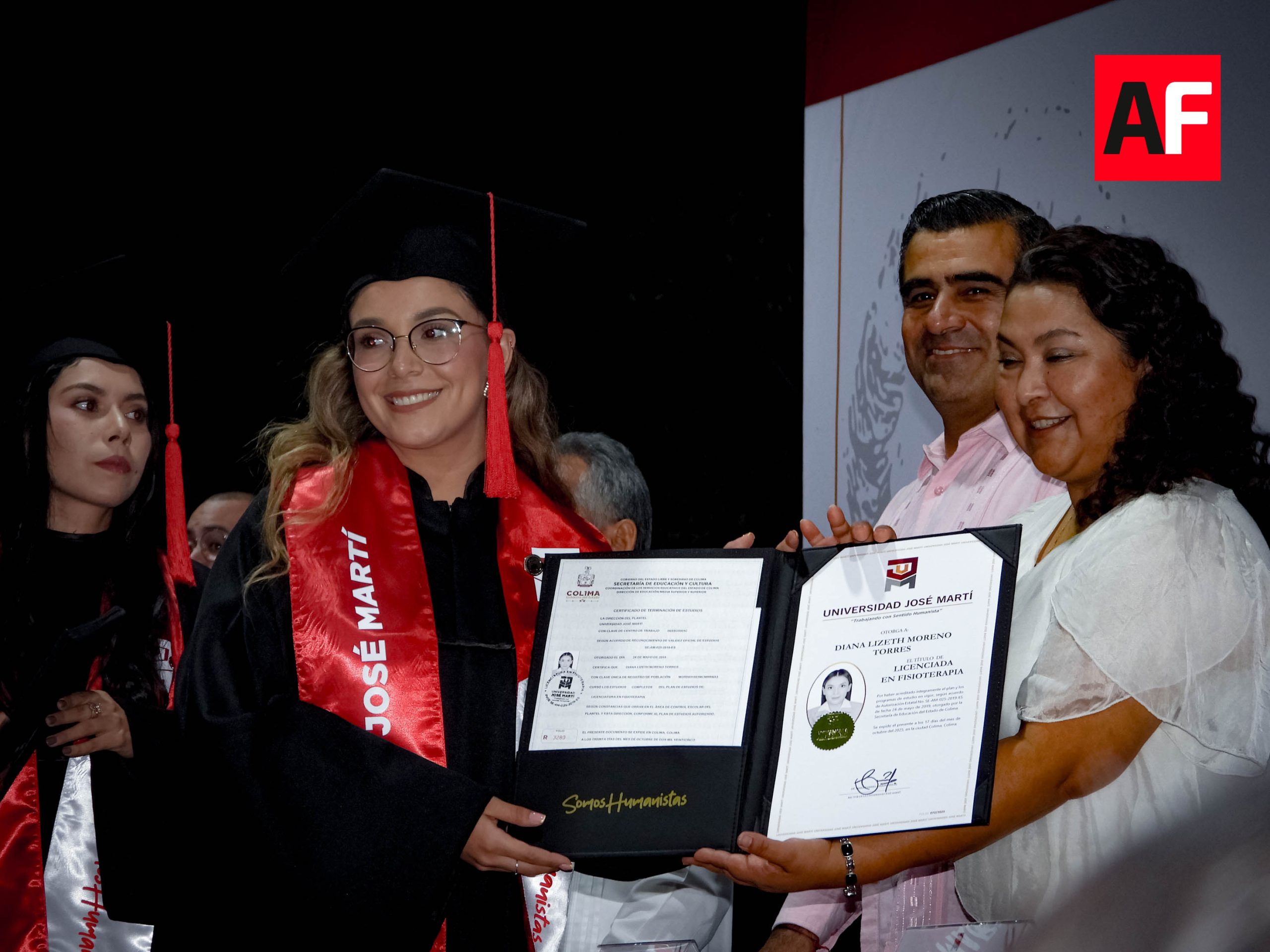 COLIMA.- La Universidad José Martí llevó a cabo una emotiva y solemne ceremonia académica en la que se entregaron certificados y títulos profesionales a estudiantes de las licenciaturas en Medicina General, Fisioterapia y Entrenamiento Deportivo. El evento reunió a autoridades universitarias, representantes gubernamentales, docentes, familias y personal administrativo, quienes presenciaron la culminación de años de esfuerzo por parte de los egresados.