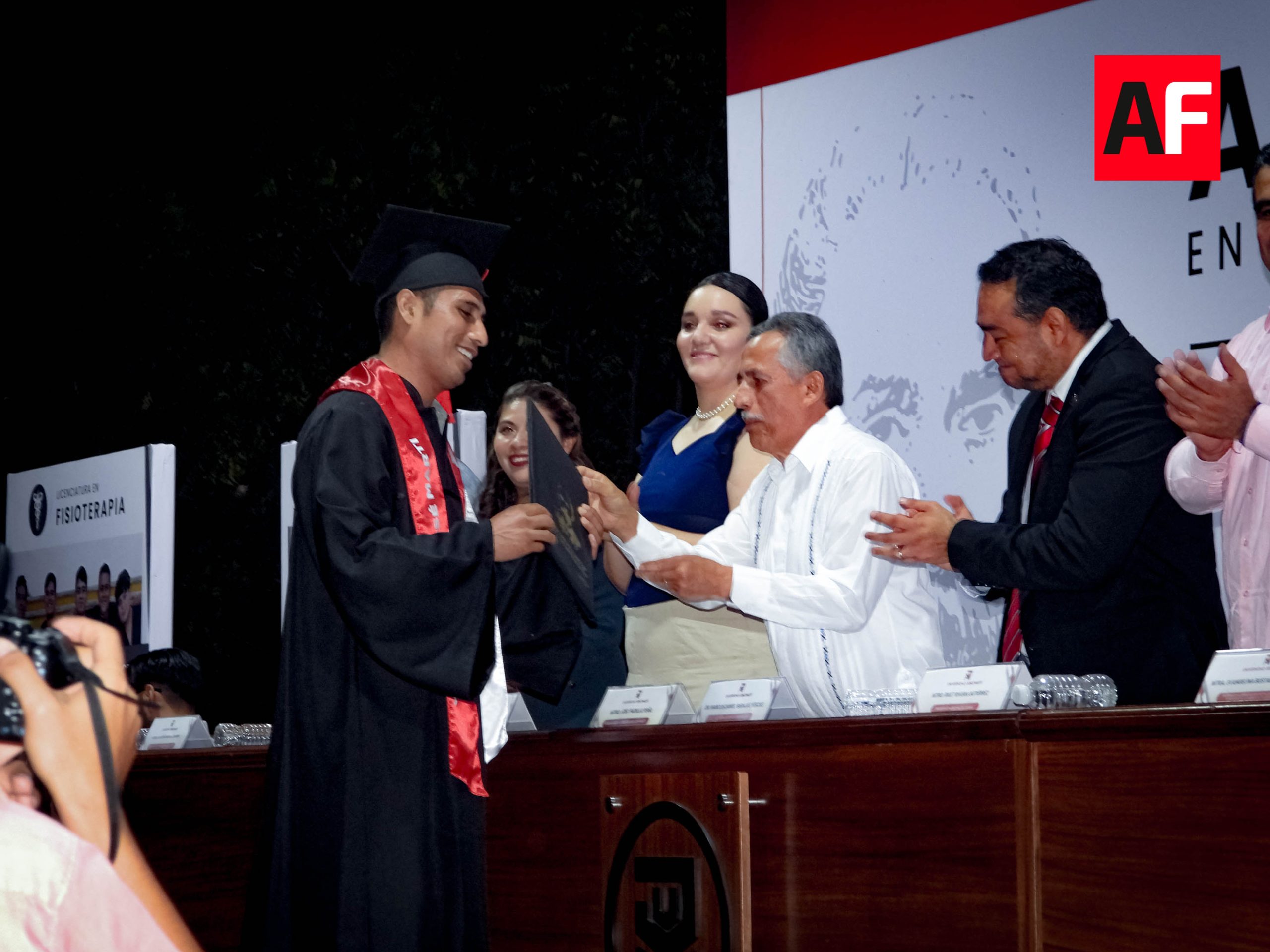 Posteriormente se llevó a cabo la entrega de certificados y títulos a la octava generación de Fisioterapia, denominada “Doctor Miguel Ángel Tapia Cruz”, así como a la generación 2019-2025 de Medicina General, “Doctor Ángel Ramón Saucedo Medina”.