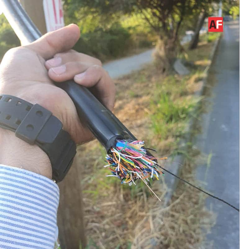 Se piensa que quienes cortaron el cable de fibra óptica buscaban cobre, aunque en cada poste se puede leer un letrero que especifica qué tal infraestructura es libre de este material.