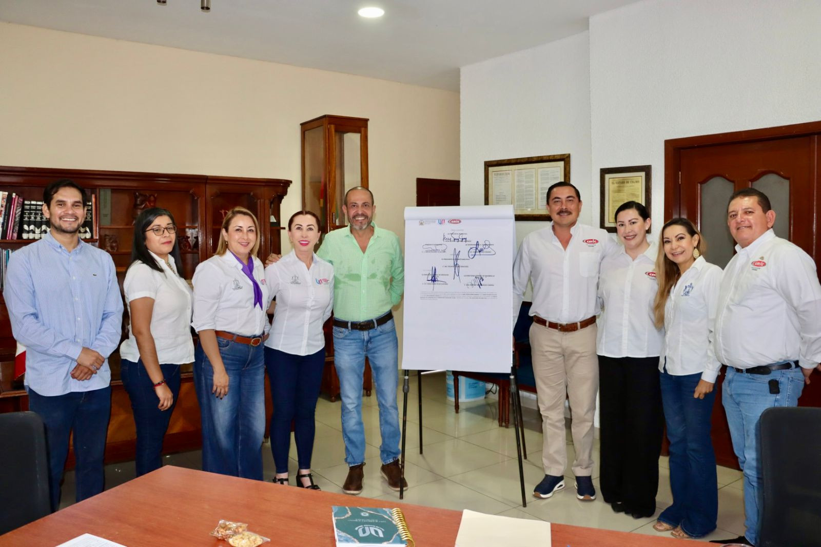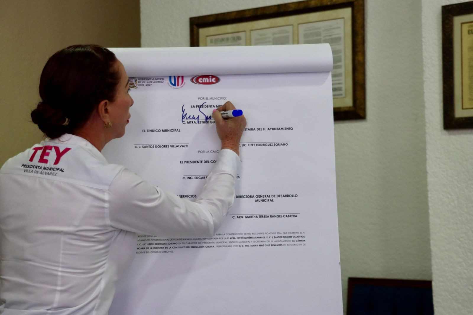 Por parte del Ayuntamiento de Villa de Álvarez, el convenio de colaboración lo firmaron la Presidenta Tey Gutiérrez, el Síndico José Santos Dolores y la Secretaria del Ayuntamiento Lizet Rodríguez; mientras por CMIC Colima fu signado por Édgar Cruz, Presidente de esa cámara empresarial.