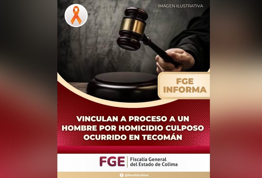 Colima.- Por los acontecimientos que ocasionaron la muerte de un ciclista en julio del año 2022, Jorge Antonio “N” enfrentará proceso penal por el hecho que la ley señala como delito de homicidio culposo, luego de que la Fiscalía General del Estado (FGE) aportara ante la autoridad judicial los datos de prueba necesarios para su vinculación.