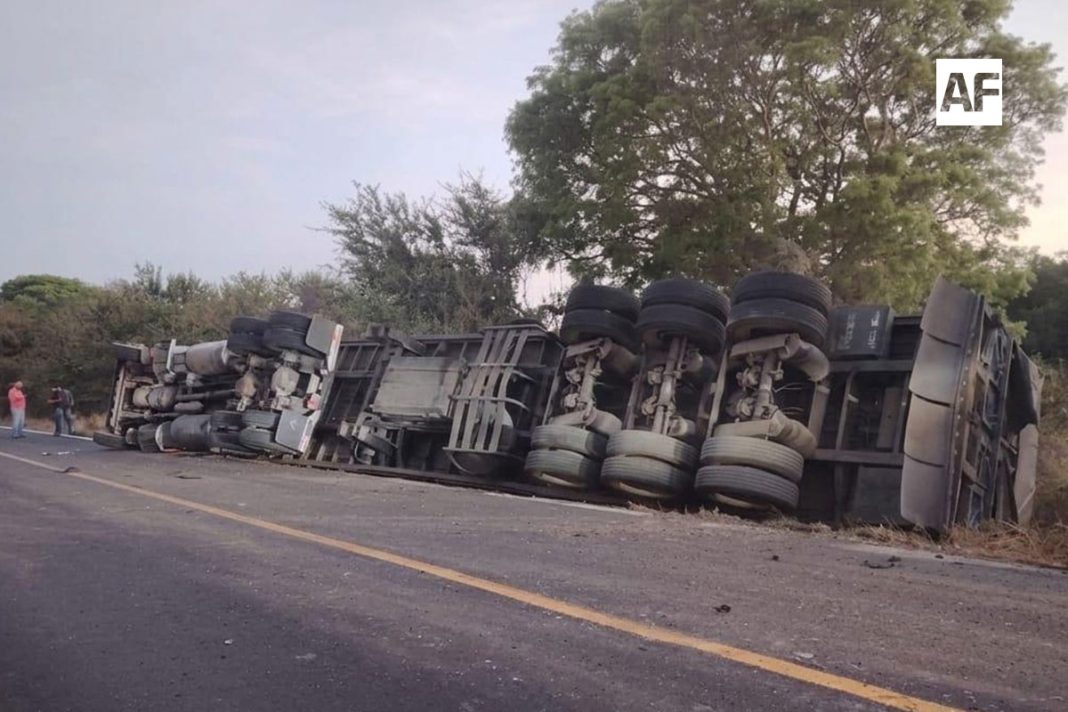 MANZANILLO.- La mañana de este jueves 16 de abril se registró la volcadura de un camión de carga sobre la carretera libre Manzanillo–Armería, lo que dejó como saldo cuantiosos daños materiales, de acuerdo con fuentes policiales.