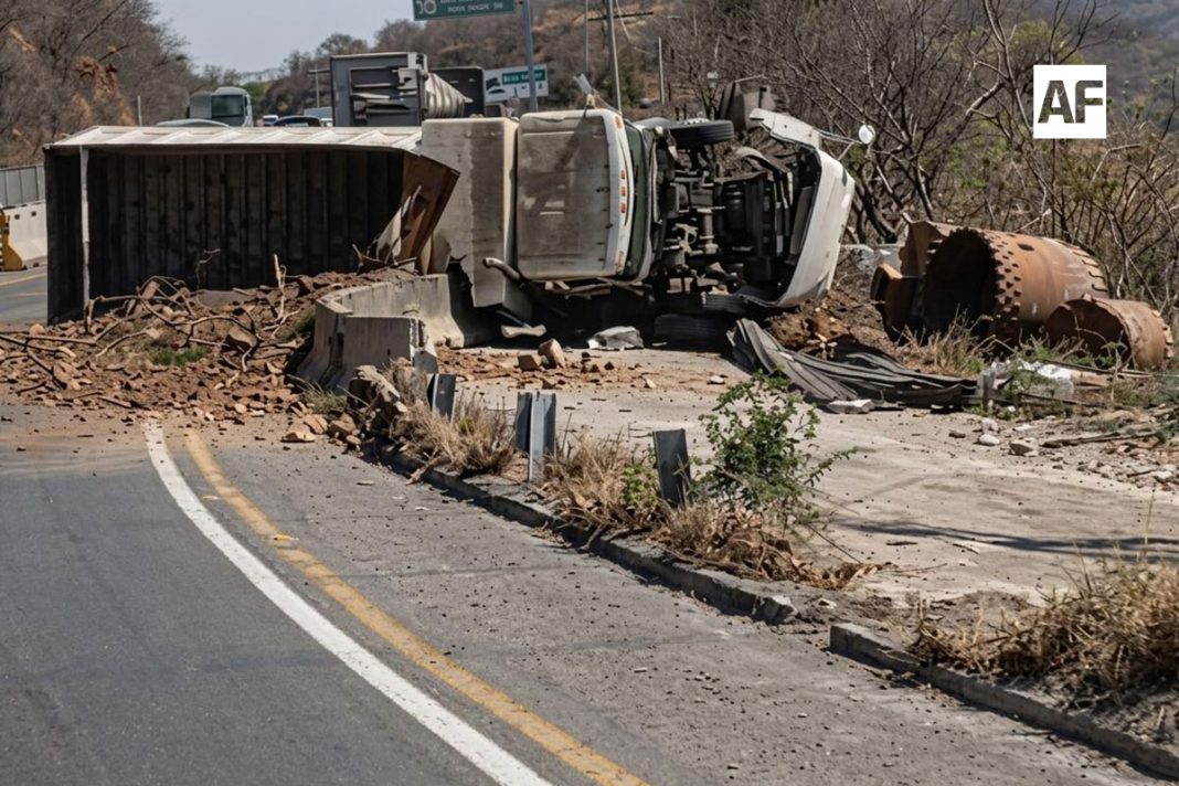 MANZANILLO.- La mañana de este jueves 9 de abril se registró la volcadura de un tráiler sobre la autopista Manzanillo–Armería, lo que dejó como saldo daños materiales, de acuerdo con fuentes policiales.